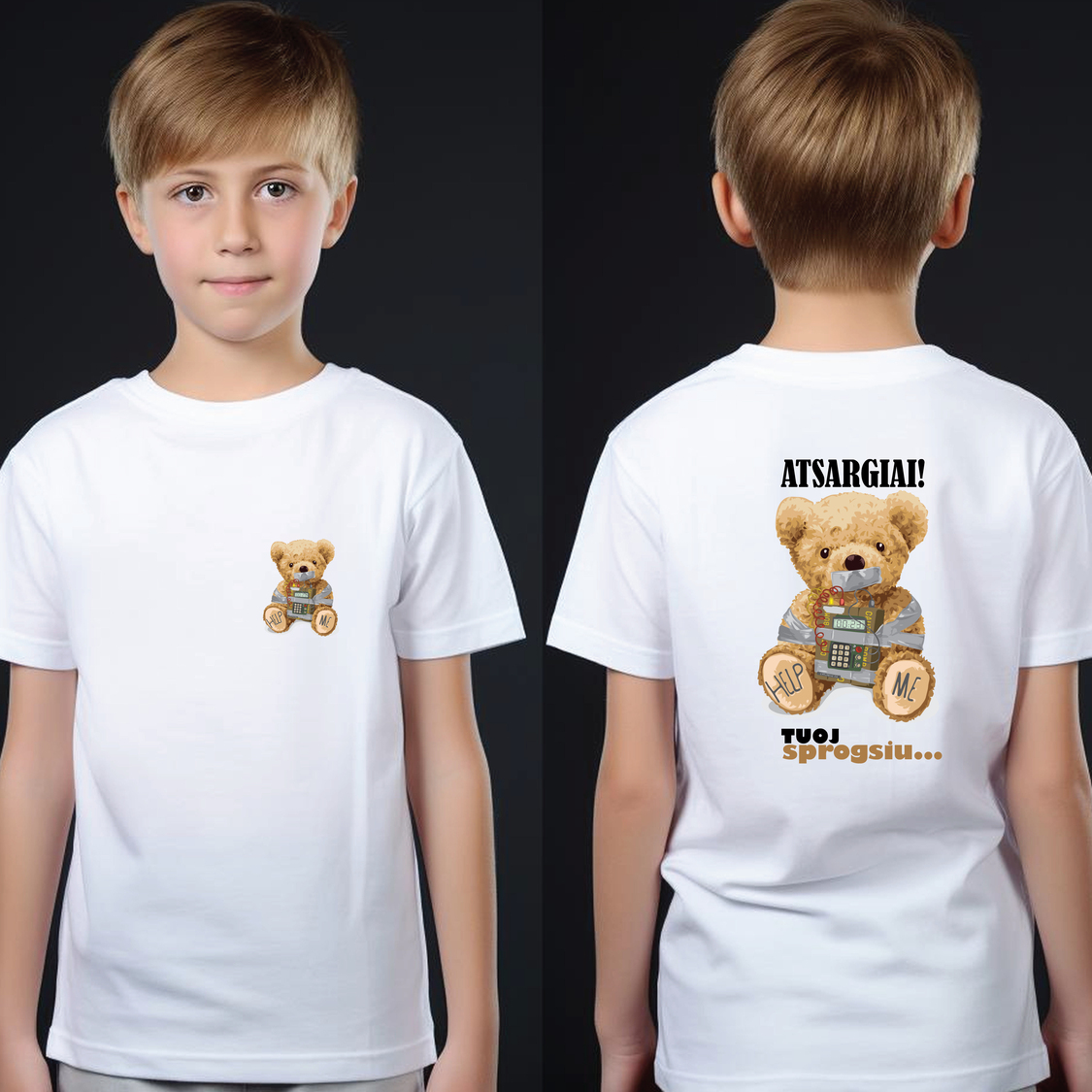 Vaikiški marškinėliai su šmaikščia žinute: TUOJ SPROGSIU.